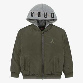 Το Jordan Big Logo Hooded Bomber Jacket για αγόρια κρατάει τη ζεστασιά μέσα και προστατεύει από την ελαφριά βροχή, προσφέροντας άνεση και στιλ.